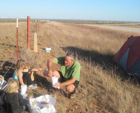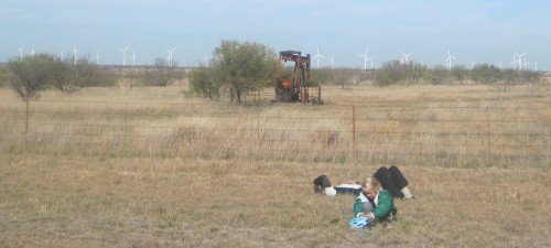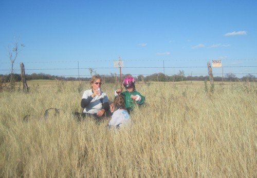 Having a Dublin Dr. Pepper in the Texas prairie grass.