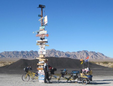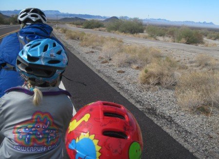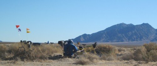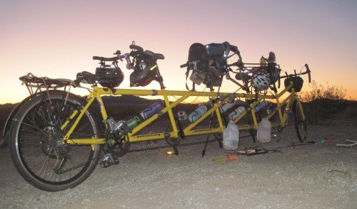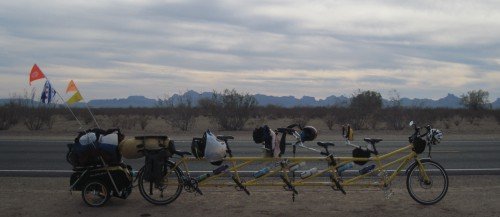 We've made it from Parker, AZ, up the hill to Vidal Junction. The bicycle is holding up well. We're confident we can make it the 90+ miles to 29 Palms.