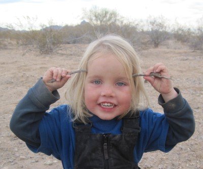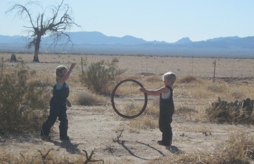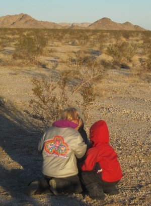 The girls with a Joshua tree in the background. Very strange brush top trees.