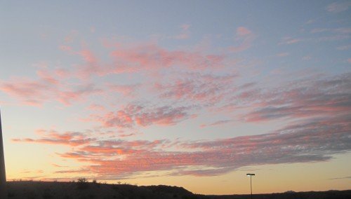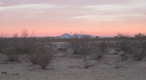 Sunrise over the Granite mountains. We traveled across them yesterday.