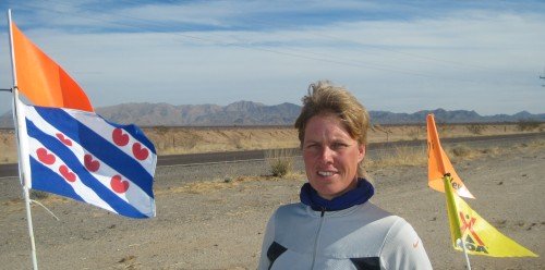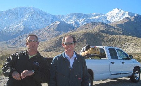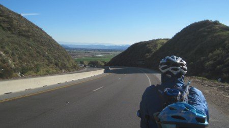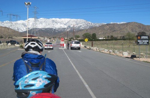January 24, 2010 Mount San Jacinto. 10,800+ feet tall. You're looking at the 10,000 foot face of the mountain, from where we stand in the valley. Saving the day are Joe and Ed. Thank you very much! It is so green here. The last time we saw this much green was in eastern Texas. Amarins just has to test the grass. The interstate is off limits. Our route takes us across the Morongo Indian Reservation. Or is it?.. The moon is watching over us. Into the valley. Lush and green. What a ride today. We've had quite some adventures. The sun is setting. The Pacific Ocean lies just behind these mountains. Cheyenne is enjoying her cake, while Chris and McKay pass out the cake for all the guests. Thank you for your generosity. May your journey be an inspiration too.