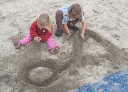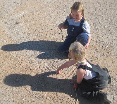 Cheyenne and Jasmine have made a maze in the sand.