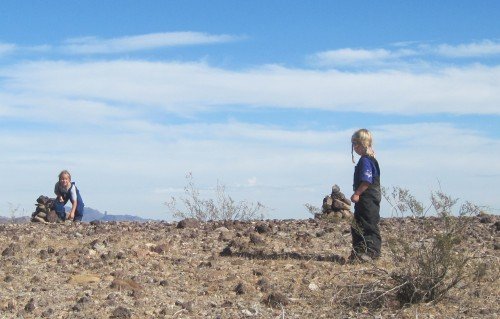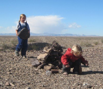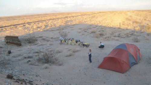 An abandoned slab provides a good camping spot at the foot of the Pinto Mountains.