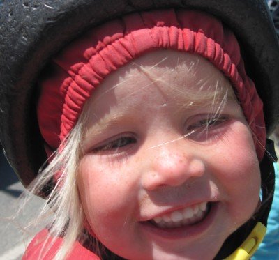 Carolyn is in full tenue for her ride with us. The bunny-hat tips it off.