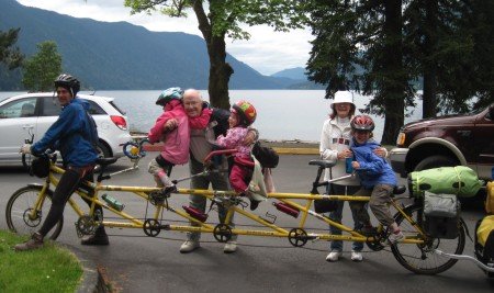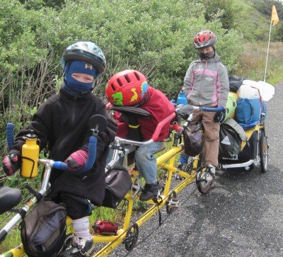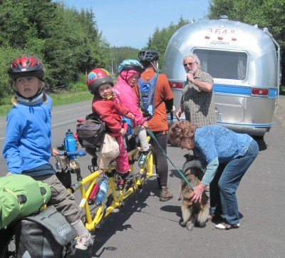 Bill shows our bicycle during a dry spell. Thanks for the support guys (and lady!)!