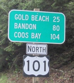 We're heading east on highway 38. Inland, then up to Eugene and Portland.