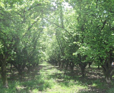 The road up the hill takes us between the hazelnut trees, along the berry bushes.