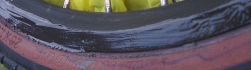 Bill cleanes the rim before taking the flat tire off.