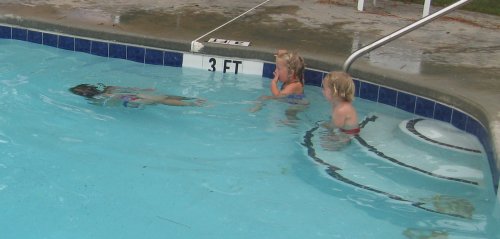 We unpack the trailer. The bathing suits need to be found. There is a swimming pool waiting. The girls are all over Bill and Wally. Especially when they can use Wally as a rocket launch! The girls have never done as much swimming as they have on this journey.