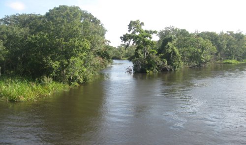 After such a restful stay it is hard to pack up and go again. But we are finally ready at a quarter before eight. Instead of going back on highway 17, we keep on the backroad. A good choice. Traffic is light and the little traffic that's there has apparently seen us on tv or in the newspaper. We get quite a couple of honks and waves.