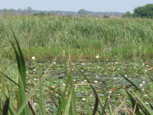 At 10am it is time to go. Many experiences and new friends richer, we leave Hardeevill behind us and head for the Savannah river. There is little traffic on the roads. The road takes us to the wildlife refuge. Nature is abundant. Lilies are everywhere. Between the lilies are some tall big yellow flowers.