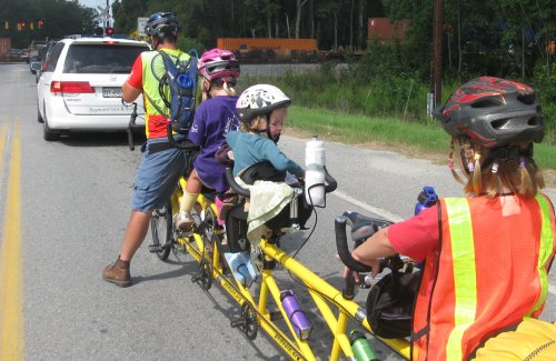 The Charleston bicycle company is located a couple of miles east on highway 17. Without a problem we locate it, the press is there waiting. We get fixed up right away. New handle bar tape, crankarms moved around, new pedals for Bill and Amarins, the rear tire warp mostly worked out; before we know it we are back on the road.