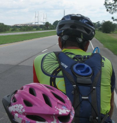 We pedal past the turn off to the Space Center. There is nothing to see but the signs. When we get to the causeway to Cocoa Beach we strain our necks to see a space shuttle. To no avail. Maybe next time.