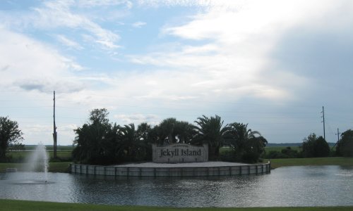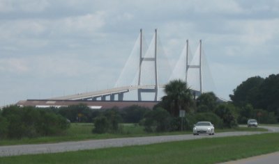 Now we have another choice to make. With the bridge behind us, so is Brunswick. It is 6 more miles to the interstate, which is on our way to Florida. There is also a big rain cloud hanging over the interstate.