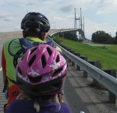 When we get to the bridge we see there is a broad shoulder for us to ride on. That is very encouraging.