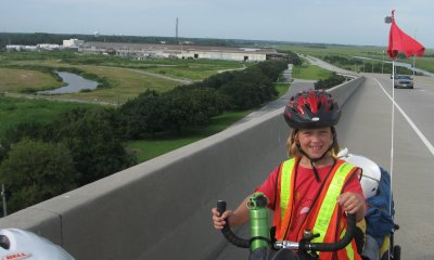 Past the refuge over a wire-mesh drawbridge (very scary) we roll into Georgia once more. The road seems pretty clear. When we get to the turn off to the Airport, Amarins decides to take that road. It turns out to be the wrong turn. We end up at I-95 instead of I-16. Once we finally figure that out, we've gone more then 2 miles out of the way. Miles we need to ride back too...