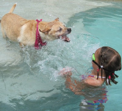 Pumpkin is part of the fun! She loves splashing in the water and being splashed at.