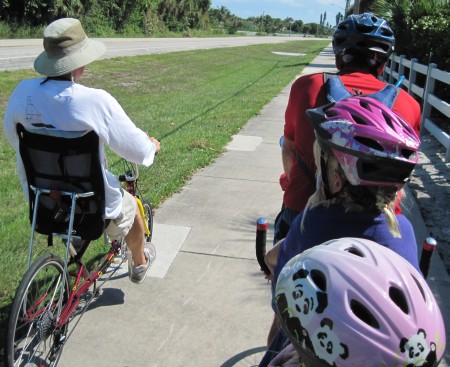 It is lunch time when we are back on the road. We are heading for Vero Beach. It will be time for a slushy by then. We pedal, we rest, we snack and we are getting there.