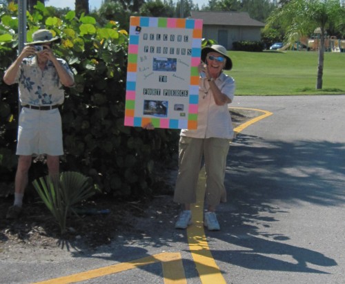 Just before Fort Pierce we turn into a little park. Wally's parents are waiting for us with a beautiful 'Welcome to Fort Pierce' sign. We get off the bicycle and are treated on real Dutch Stroopwafels. Yummy!