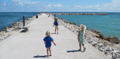 The Ocean on our left, the river on our right. Fish are jumping across the water, there are birds abound. The miles are passing quickly. It is only 10am when we reach Sebastian Inlet State Park.