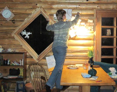 We have a visitor coming today! Juneau James is coming to Fairbanks! I'd love to bake some homemade goodies, but we're out of gas! We can't believe it. This morning we started smelling gas in the cabin. It smells exactly the same as when our tank at home would go empty. Sure enough, when Bill tries to lift up the tank he can feel that it is almost empty. We can't believe it! We've used a 100lb tank of propane in two months. A 60lb tank in Kentucky lasts us easily six months! I bake a lot, but that much? Part of it is of course the lights we're using. I guess we're finding out how much gas they take!