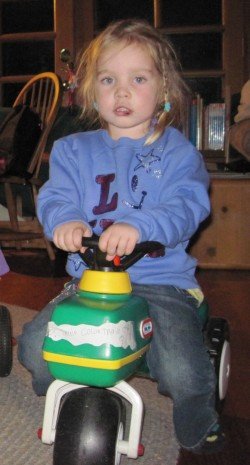 So there I sit at the bottom of the steps, quite a bit out of breath, wondering what to do next. Cheyenne helps get me a cold rag to put on my toes, that helps a little. Jasmine brings me the tractor, with her help I get it under my bum and slowly roll to the couch. Robin helps with the steering. Phew, that was quite a journey. Only three yards at the most, but it can surely wear one out. There I sit, the girls are getting hungry, Bill is not yet home from work, and I'm immobilized. These are the moments the girls grow up to the challenge.
