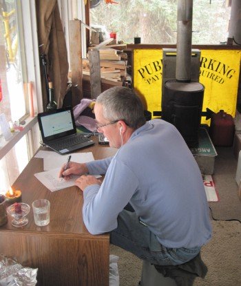 Bill is getting situated on the covered porch. The time has come to add regularly to the book. We want to have it written by the year's end. Then we can start rewriting it. It can be edited. And then it can be printed. By the end of the winter we expect to have a brand new book ready for your and our enjoyment. We've been working on the skeleton for a while. Now it needs dressing up. We're going to write it together, tag teaming.