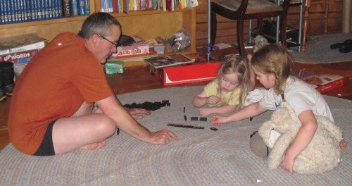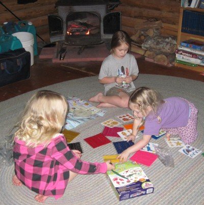 Before the girls go to bed we read a story in fornt of the fire. We haven't found the second part to Inkheart yet, but Jasmine has found a good substitute in the library: The Shadow World. Full of mystery, magic, fairies, and other magical critters. Tonight we're finishing with a puzzle game on the phone.