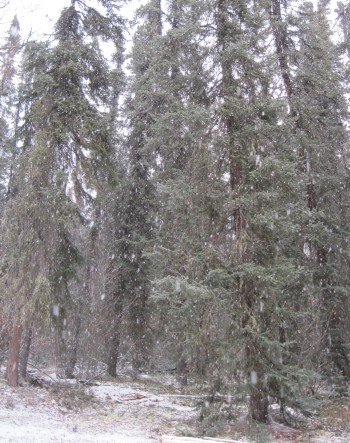 The outdoor refridgerator is covered with snow. It still sticks out easily. Easy enough to find. I wonder how it's going to be once the real snow starts falling. Perhaps we'll need to build a little snow house around it so we can still lift up the lid and pull out the fresh groceries. It's not a real concern right now, but we're gettting to see how quickly the weather can change. Eventhough it's not as cold as it was over a week ago, the dampness in the air makes it feel as if it's just as cold.