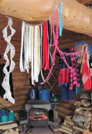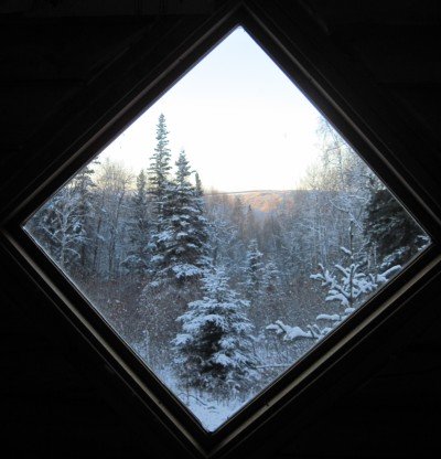 The cabin is nice and warm. The stove does great. The sun adds a bit of warmth too. It's nice and bright inside.