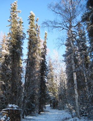 Perhaps we can stop at the transfer station and find some bigger ski's for Cheyenne and Jasmine. The transfer station is the most interesting place in town. Fairbanks doesn't have garbage pick up, but it does have several places where you can dump your garbage. Also in that area is an open place with a roof where you can drop off the items you don't use anymore, but are still good to use. Clothes, refridgerators, ski's, tupper ware boxes, toys. You name it, you can find it. Everyone knows about it and everyone uses it. It's a great set-up.