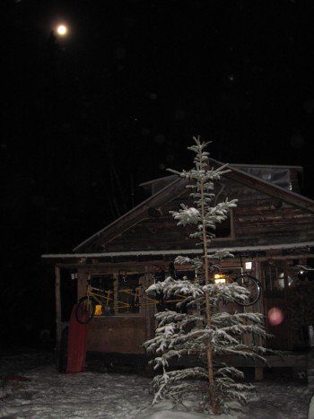 When we head back up the mountain it is dark and snowing. I'm not that used to driving a car anymore, let alone in the dark and in the snow. The snow isn't thick, but makes me suspicious of slippery spots on the road. Slowly but steadily we make it up the mountain and arrive safely at our cabin. Jasmine is already fast asleep.