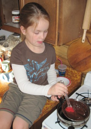 When Bill is home, he's making the hotcakes. Always special. He'll throw in some chocolate chips too. Makes the girls bounce before and after the hotcakes!