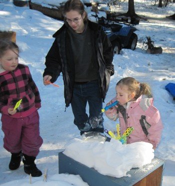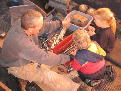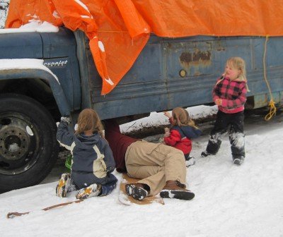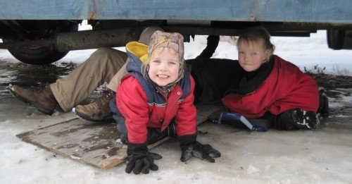 Crawling out from under the darkness and from under the snow!Winter keeps on going. We're enjoying it while it lasts. Out and about. ![]() We're starting to wake up at above zero temperatures. ![]() Robin is getting the hang of the skis. ![]() The sacred wood pile. We've had this pile since the beginning of winter. It is super dry wood. We've kept it for emergency heat. So far we haven't needed it yet. All our preparations have worked out well in surviving this near arctic winter. ![]() Working away at the igloo. ![]() The snowman we made in November is still standing, with some added snow too. ![]() It is warm in the sun while making trails in the snow. I can take my coat off and still be warm. ![]() All the trail making has cleared the path of the swing. It's back in use by Jasmine. ![]() ![]() All the snow scooping has resulted in a nice high pile of snow to jump over. ![]() The first outdoor picnic of the year. ![]() Robin is checking the weather to see if it's time for shorts yet. ![]() Jasmine the snow princess. ![]() Cheyenne and Jasmine have found a precious commodity: soil. ![]() Robin is not to be left behind on the exploration. ![]() Blowing bubbles with Vincent. It is almost cold enough for the bubbles to freeze in midair. ![]() Vincent is under attack. ![]() Snack time at the igloo. Jasmine wears the hairbow made by her sister Sara. ![]() A moment of peace in the setting sun. Down hill skiing on Moose Mountain. ![]() At the top of the slopes. ![]() ![]() ![]() There goes Cheyenne. ![]() There goes Jasmine. In the cabin. ![]() Cheyenne made this sign at the start of the bookwriting process. ![]() The final chapter (that is: the first draft of the final chapter)... ![]() Surprise boxes. A box from Gabby and her mom, and a box from our editor Caroline. ![]() Lots of fun and education in Gabby's box! Thanks! ![]() Books, activity kits and some candy. Thanks Caroline! ![]() Special delivery for Bill: an alternator for the bus. Thanks Tom and Margie from Deer Island, Oregon! ![]() And there it is. ![]() Stuffy stable. How to spend an hour. Do I spend it on updating the website, (re)writing the book, the housekeeping, time with the girls and/or with Bill, other logistics concerning the book, selecting pictures for inside the book, or any of the other pieces of the book writing puzzle? It is amazing to realize how time consuming the book process is. It is also amazing to see it come together. Little by little but surely so. All chapters are with the profreader now. The first ten we've already gotten back. For those we're putting the pictures together. The design for the dust jacket is in the process of revisions. Since most of the logistics, front- and back end of the book are my tasks, Bill has his hands free to start on the bus. A project he's happy to indulge in. Everything mechanical, electrical and brake wise is going to be replaced, renewed or otherwise upgraded. ![]() The grill has been removed, and the radiator is pulled out. ![]() The girls are right there with him when he pulls the brake booster off. ![]() Robin and Jasmine help Bill organize his tools. ![]() With Dad under the bus. ![]() Arctic man... ![]() Robin checks the strenght of the engine pulley. ![]() The engine is out. It's been temporarily parked in front of the bus. And that was a good thing, since the bus moved two feet forward after the engine was pulled out and had a run-in with it. The new engine is well on its way to make it from North Carolina to Alaska. Our thanks goes to: